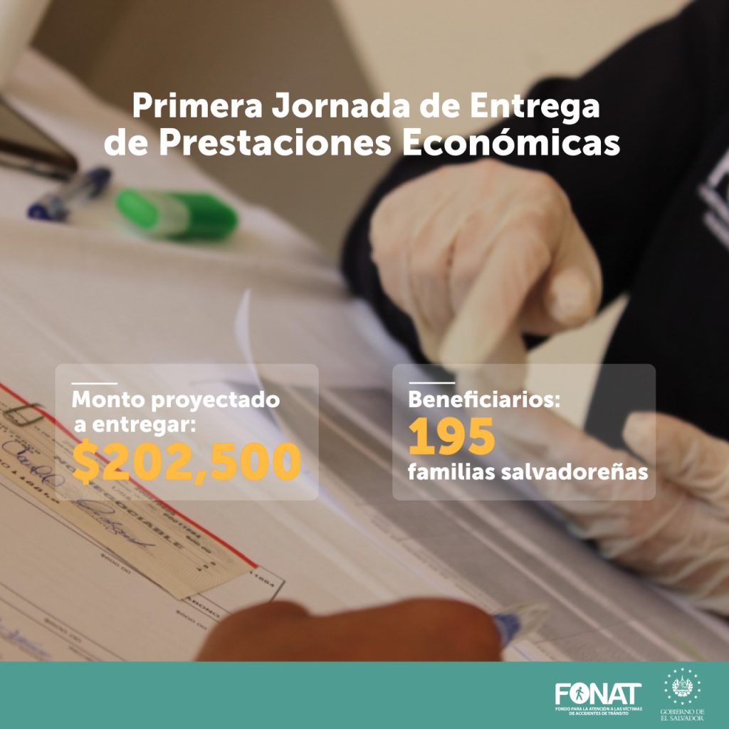 El Fondo para la Atención a las víctimas de Accidentes de Tránsito realiza la primera jornada de entrega de prestaciones económicas del 2022, para beneficiar a más de 195 familias salvadoreñas afectadas por un hecho vial.