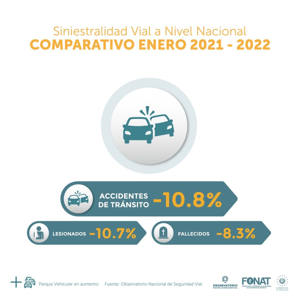 El Observatorio Nacional de Seguridad Vial informa sobre las estadísticas de hechos de tránsito al cierre de enero, en el comparativo 2021-2022, se registran reducciones en los tres indicadores: los Siniestros viales han disminuido en un 10.8%, los fallecidos -10.7 y los lesionados -8.3%.