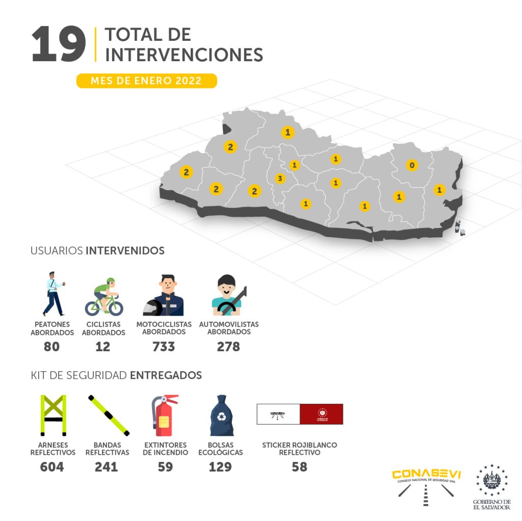 En el mes de enero, se realizaron un total de 19 operativos, en donde participa también la División de Tránsito Terrestre de la Policía Nacional Civil y se busca identificar a conductores peligrosos que ponen en riesgo su vida y la de otros en calles y carreteras.