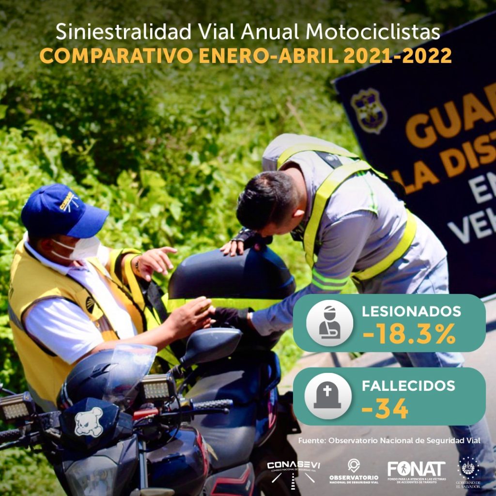 En el análisis de la siniestralidad vial en motociclistas, al finalizar el mes de abril, el Observatorio Nacional de Seguridad Vial informa: los fallecidos han disminuido en un 18.4%. Con una variación de 34 víctimas mortales menos en relación al mismo período, comparativo al año anterior.
