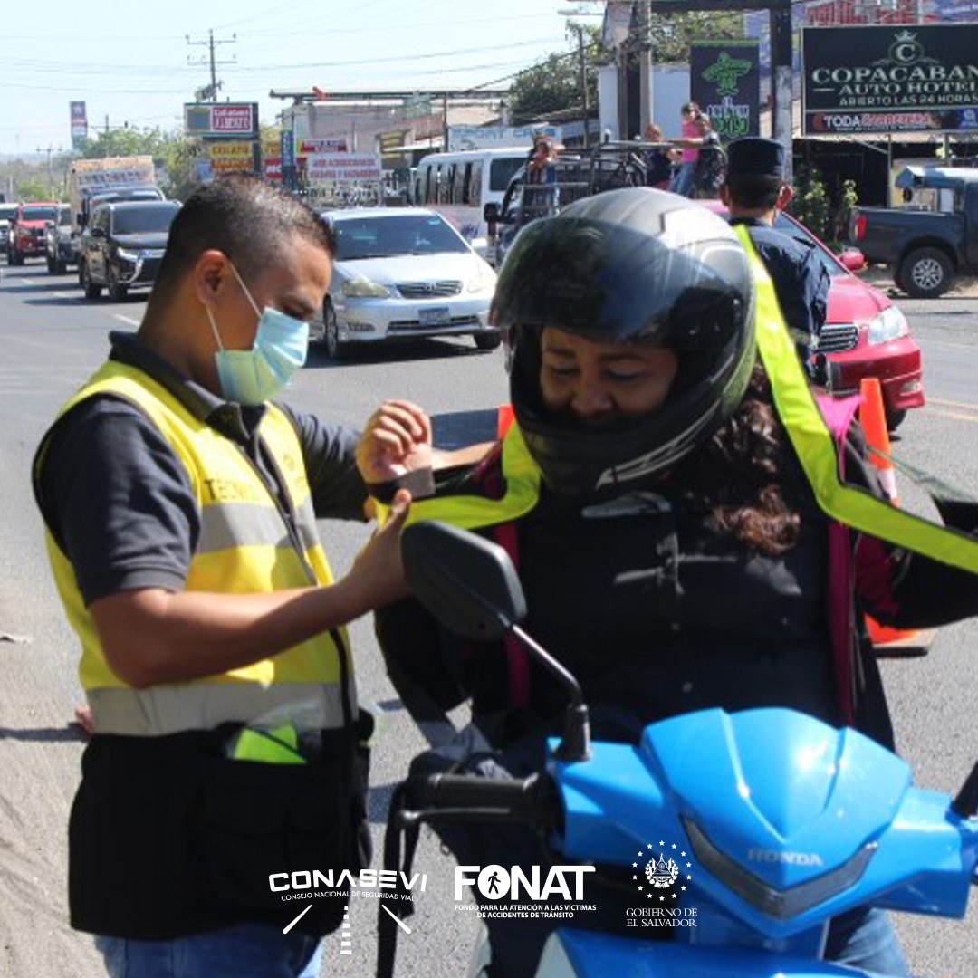 Como estrategia, desde el Consejo Nacional de Seguridad Vial (CONASEVI) y los Consejos Departamentales de Seguridad Vial (CODESEVI) el VMT impulsa acciones para reducir la siniestralidad vial en los motociclistas, donde se les entregan arneses reflectantes e informa sobre las buenas prácticas al conducir.