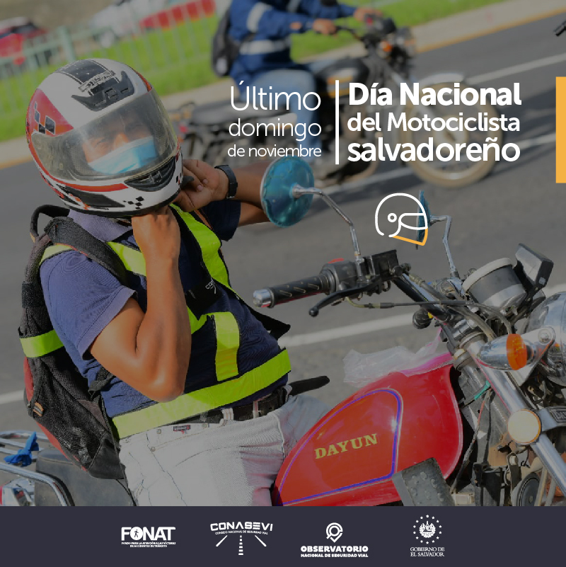 En el marco en el Día Nacional del Motociclista Salvadoreño, el Fondo para la Atención a las Victimas de Accidentes de Tránsito, FONAT, reitera el compromiso con segundo actor más vulnerable en las calles, para seguir impulsando políticas, desarrollando estrategias y ejecutando acciones a fin de proteger sus vidas.