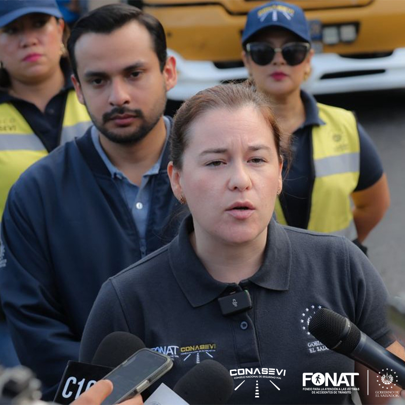 El viceministro Nelson Reyes y la directora del Fondo para la Atención a las Víctimas de Accidentes de Tránsito (FONAT), Paola Bardi, verificaron un control instalado sobre el bulevar Monseñor Romeo y la avenida El Espino.